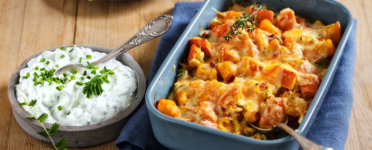 Sommerlicher Ofenkurbis Mit Finello Ofenkase Rezept Arla Foods