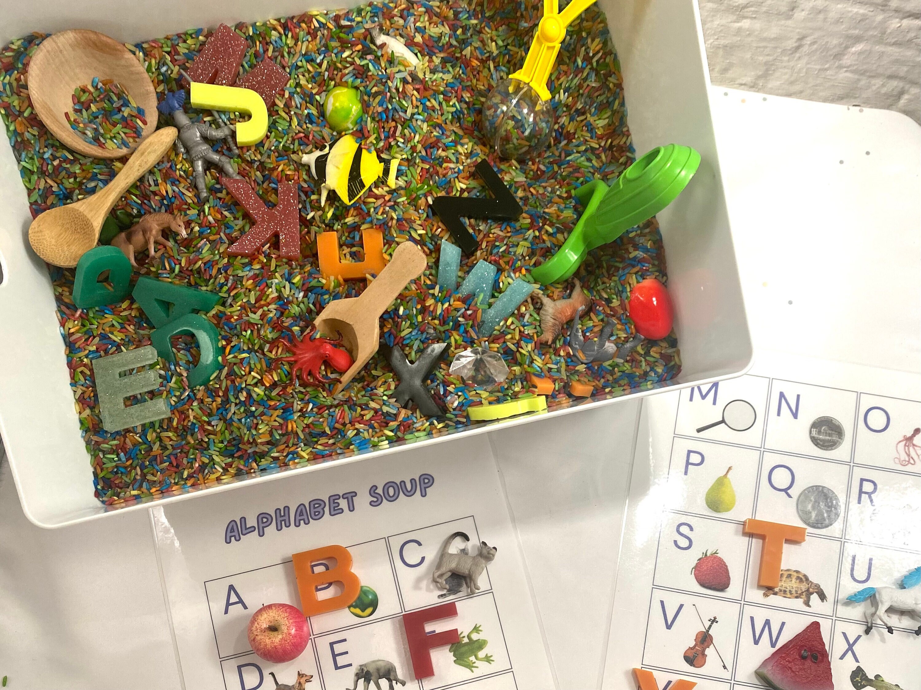 Sensory Bin Alphabet Sensory Bin Rice Bin Sensory Play Etsy